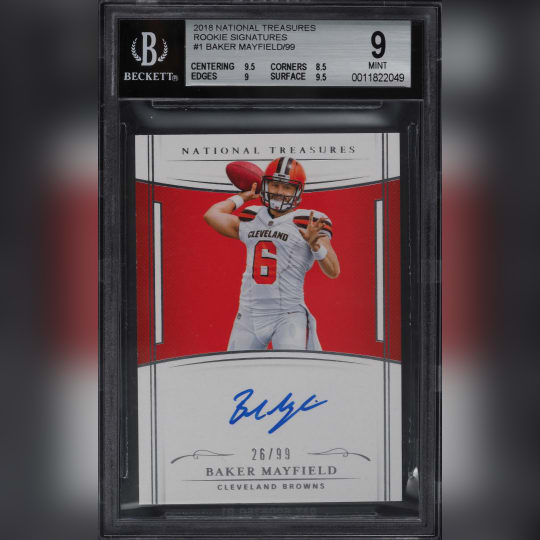2018 NATIONAL TREASURES SIGNATURES BAKER MAYFIELD ROOKIE AUTO /99 #RS-BM BGS 9