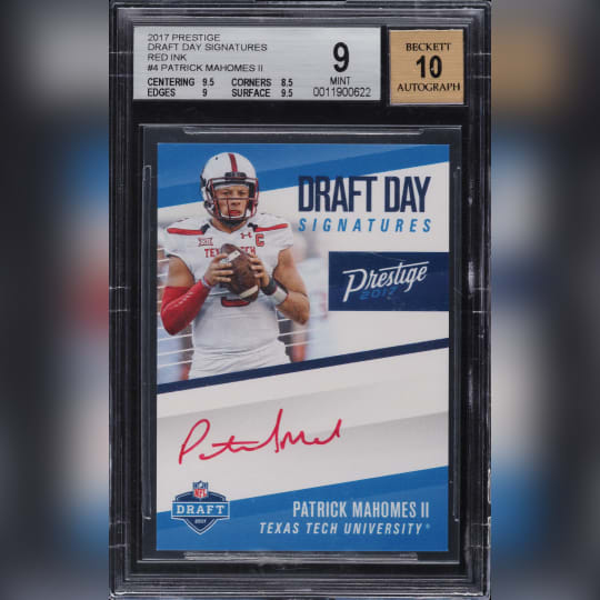 2017 PRESTIGE DRAFT DAY RED INK PATRICK MAHOMES II ROOKIE AUTO #DDS-PM BGS 9