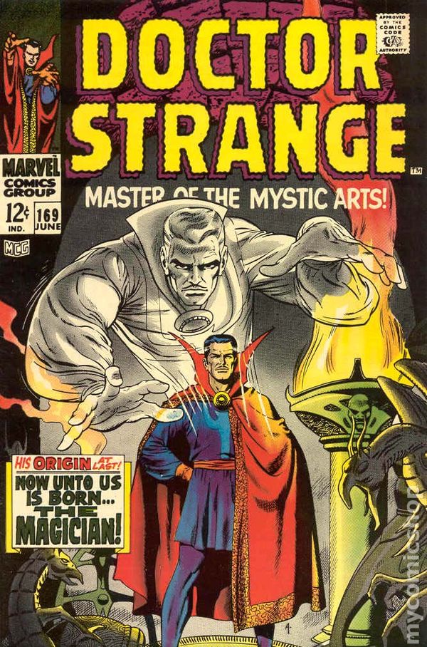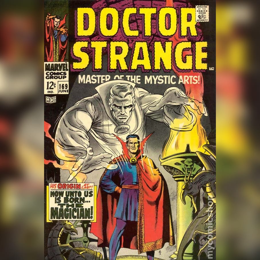 Doctor Strange stories continued from Strange Tales. 1st Doctor Strange in his own title. Cover art by Dan Adkins. The Coming of... Dr. Strange, script by Roy Thomas, art by Dan Adkins; Origin of Dr. Strange retold; Stephen Strange seeks out the Ancient One in Himalayas in hope of a cure for his damaged nerves; He discovers that Baron Mordo, a pupil of the Ancient One, is plotting to kill his teacher; Strange warns the Ancient One and then asks to study the mystic arts. House ad for Amazing Spider-Man #61 and Thor #152. Letter to the editor from comics historian George Olshevski. 36 pgs. $0.12. Cover price $0.12.