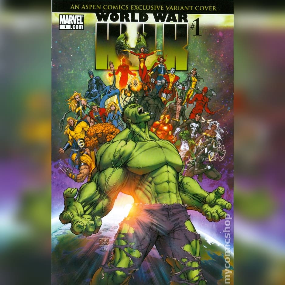 Aspen Comics Exclusive Variant Cover by Michael Turner. Written by GREG PAK Penciled by JOHN ROMITA JR. Cover by DAVID FINCH Variant Cover by JOHN ROMITA JR. Marvel's massive summer smashfest begins! Exiled by a group of Marvel 'heroes' to the savage alien planet of Sakaar, the Hulk raged, bled and conquered through the pages of last year's 'Planet Hulk' epic, rising from slave to gladiator to king. Now the Hulk returns to Earth to wreak his terrible vengeance on Iron Man, Reed Richards, Dr. Strange and Black Bolt -- and anyone else who gets in his way. Stronger than ever, accompanied by his monstrous Warbound gladiator allies, and possessed by the fiercest and purest rage imaginable, the Hulk may just tear this stupid planet in half. The epic story of anger unbound begins with this special double-sized issue written by 'Planet Hulk' scribe Greg Pak and penciled by the legendary John Romita, Jr. 48 PGS./Rated T+ NOTE: "If you haven't picked up the Planet Hulk Hardcover, the World War Hulk Prologue, and World War Hulk #1, you are genuinely missing out on some of Marvel's best work in a long time." - Chris Powell, Lone Star Comic General Manager Cover price $3.99.