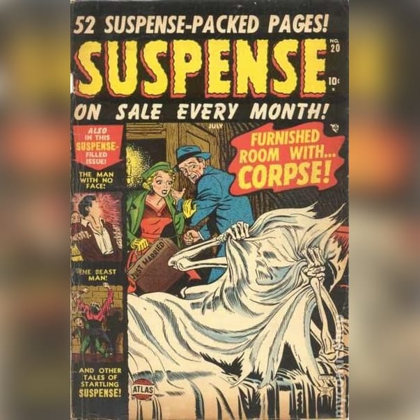 The Beast-Man starring Frankenstein's monster and William Frankenstein (grandson of the original doctor), script by Stan Lee, pencils by Werner Roth. Stranger in the House!, art by John Romita. The Pain in the Neck, art by Allen Bellman. Furnished Room with Corpse, art by John Romita. Fairy Tale!, pencils by Edward Goldfarb, inks by Bob Baer. Joe Bonomo's mini-gym ad, pencils by C.C. Beck. The Brute! The Oath! The Man with No Face, art by Dick Ayers. 36 pgs. $0.10. Cover price $0.10.