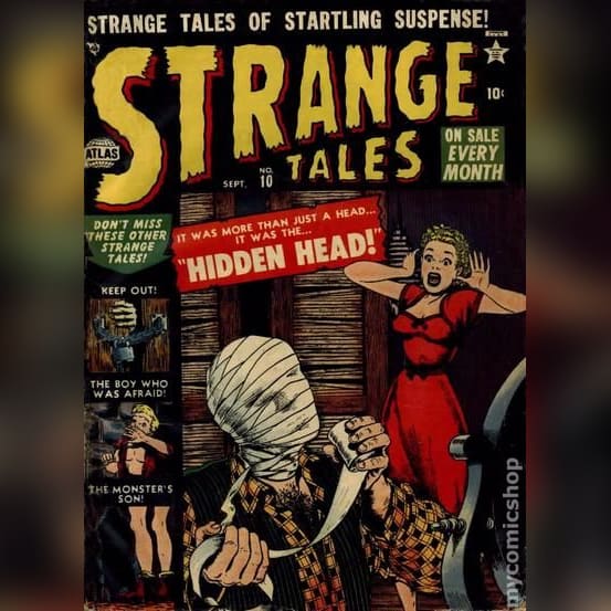 Cover art by Bill Everett. The Boy Who Was Afraid, art by Bernie Krigstein; A boy doesn't want to play outside because if he steps on the cracks in the pavement the ground will swallow him up. Dream of Death text story. The Monster's Son, art by Jim Mooney; Frankenstein's monster creates an heir. The Frightful Feet, art by Bill Benulis; A rabbit hunter who hacks off their feet to sell as good luck charms has the tables turned on him. The Hidden Head, art by Ed Winiarski. Keep Out, pencils by Dick Ayers, inks by Ernie Bache. 36 pgs. $0.10. Cover price $0.10.