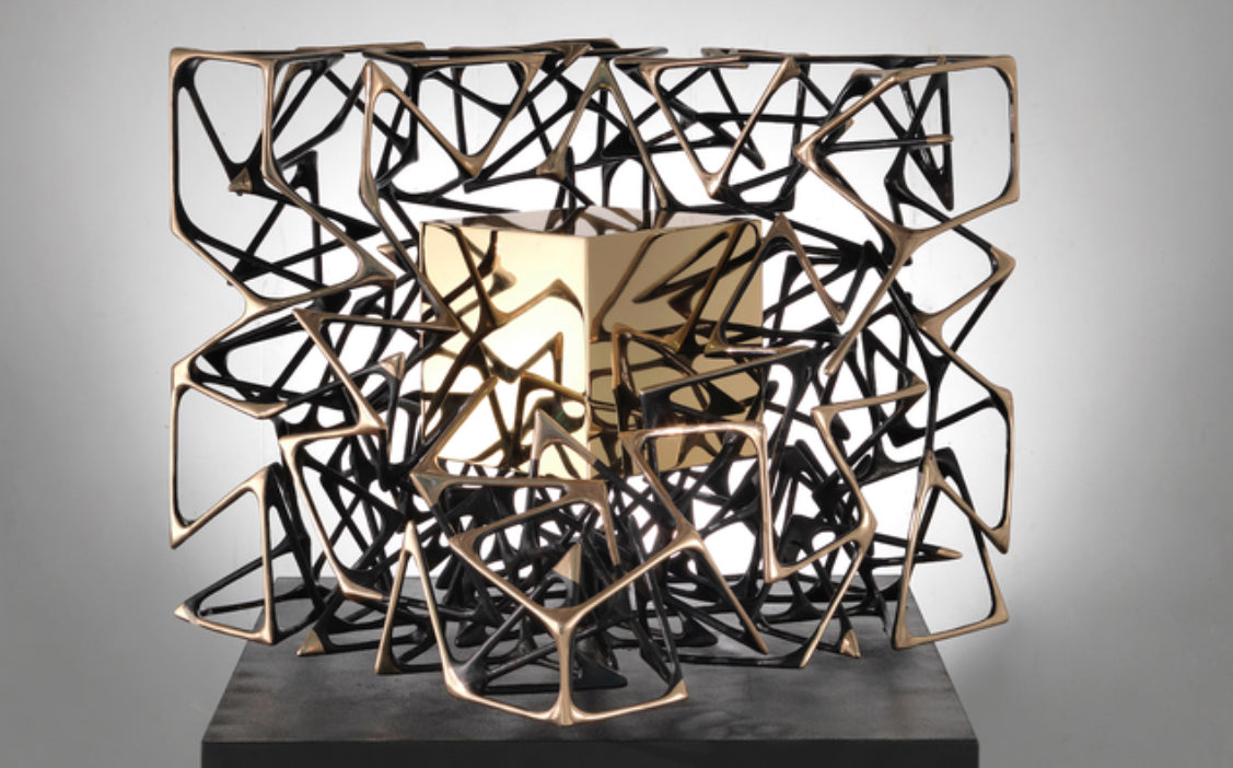 The artist shapes his sculptures inspired by biomorphic tissue and the labyrinth, symbolizing the tortuous path of humanity looking for its essence, and revealing his recious soul. Meggiato thus invents the concept of “introsculpture” in which the observer point of view is drawn towards the inner part in the artwork, not only restricting on the surface. «On a formal level, space and light don’t define the work, sliding over it as if it were in-the-round; they indeed penetrate inside it, wrapping its lattices and tangles, reaching the central sphere point as as a quintessential point of arrival».