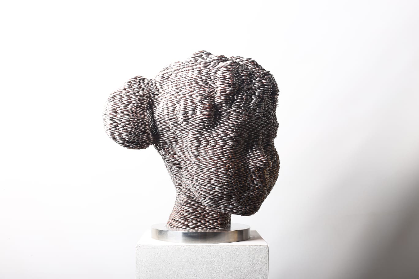 Seungwoo is famous for his sculptures made from coins and buttons. He creates hyper-realistic, life-size sculptures of human figures and spinning objects.