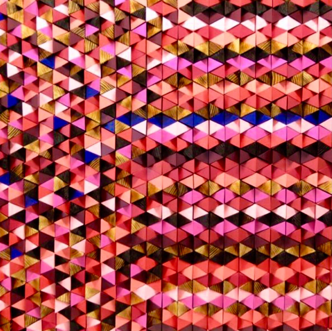 "Fractals" is the symbol of the diverse conjunctures where his thoughts, his ideas and his own being have been fractured. This has determined who he is. The artwork presents itself in a moment of blooming of his life, to amend the broken, unite what was once separated and see with faith the different. By fusing thousands of pieces of wood and resin that represent each moment of rupture that we have, he manifests that no matter how many breaks we have undergone, one will always find a way and a time to transform himself.