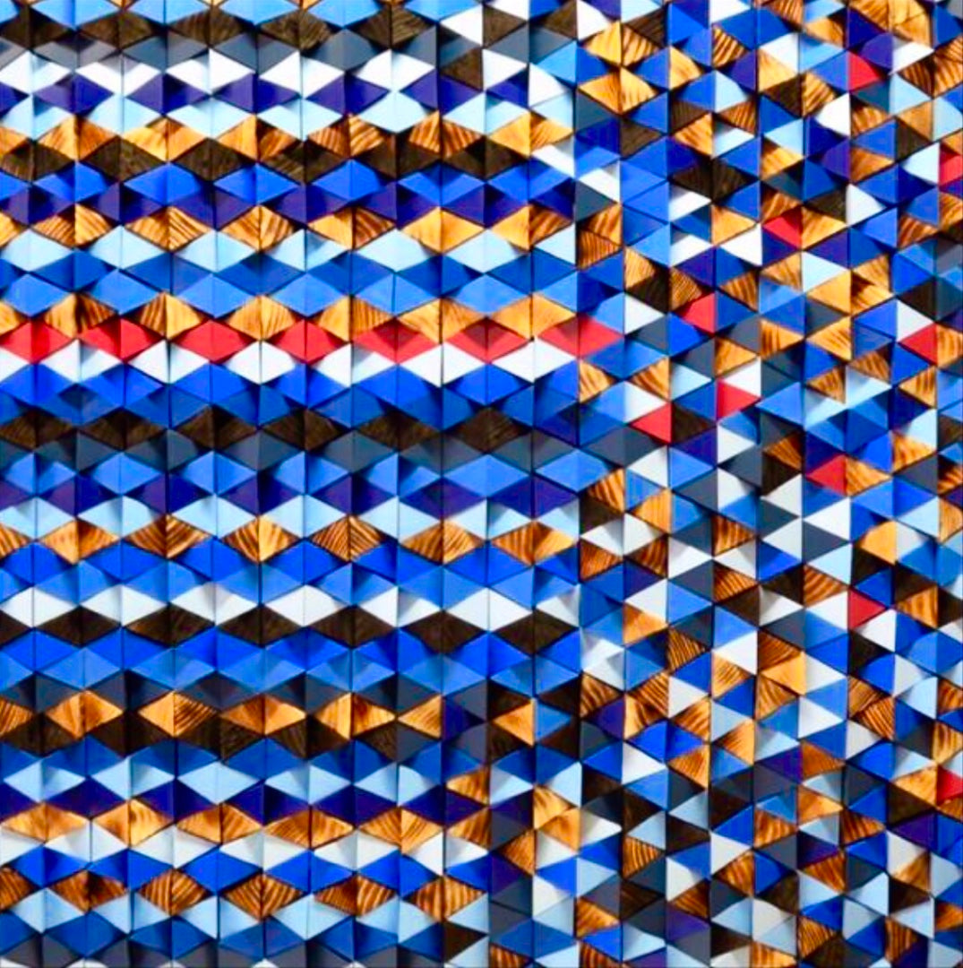 "Fractals" is the symbol of the diverse conjunctures where his thoughts, his ideas and his own being have been fractured. This has determined who he is. The artwork presents itself in a moment of blooming of his life, to amend the broken, unite what was once separated and see with faith the different. By fusing thousands of pieces of wood and resin that represent each moment of rupture that we have, he manifests that no matter how many breaks we have undergone, one will always find a way and a time to transform himself.