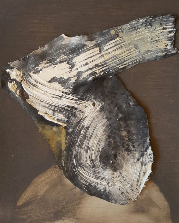 Daniel Martin creates his work by the deformation and recreation of matter. He casts his sculptural paintings by the mastery of chance and mistakes. His collage portraits breathe a universe of undiscovered human artifacts and transmutational structures.