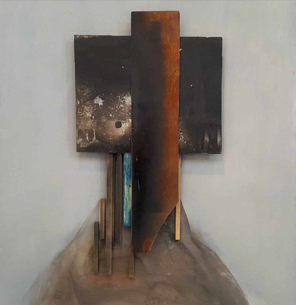 Oil, steel and wood on panel, 2019