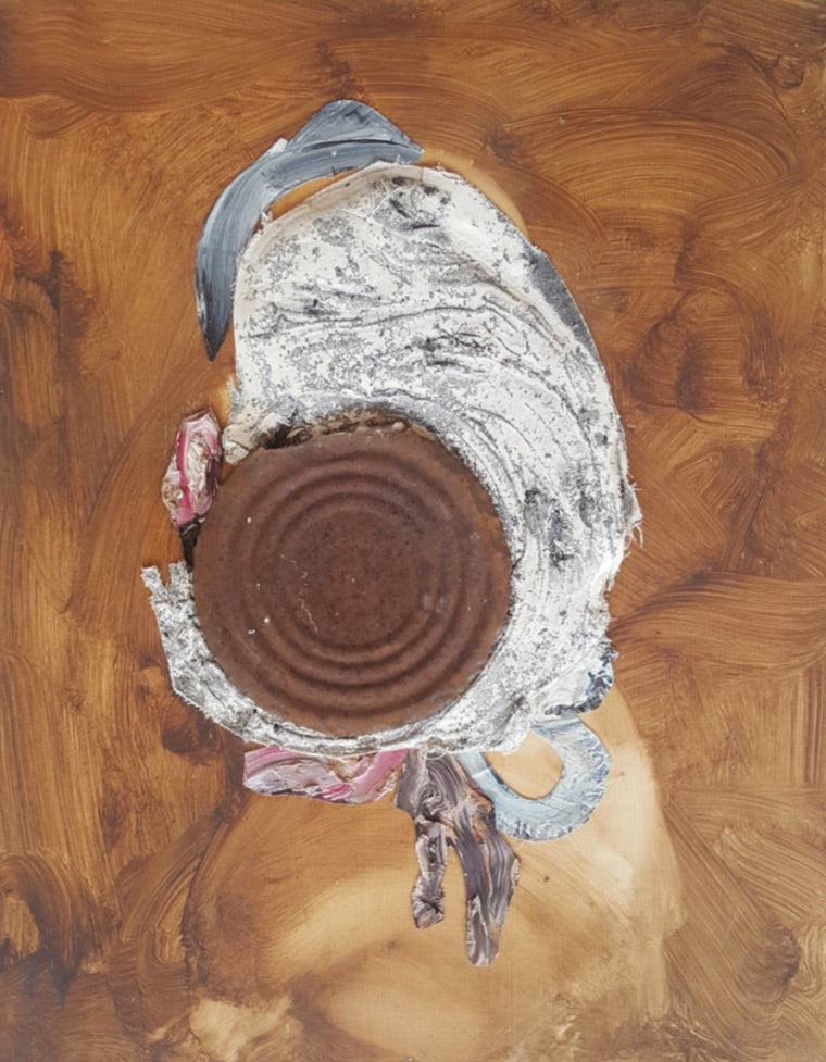 Acrylic, oil and steel mounted on panel, 2019