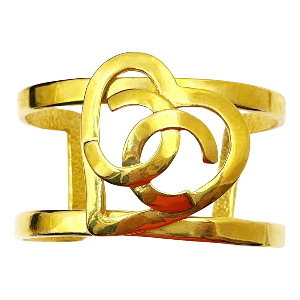 Vintage Chanel Gold Plated Heart CC Double Cuff Bracelet *Marked 95 *Made in France *Comes with original box and tag [[2]]-It measures approximately 2.5" x 1.75". -Unique size. -Very shiny and clean -In excellent vintage condition[[2] ] AB3995-00515 Packaging: Original case