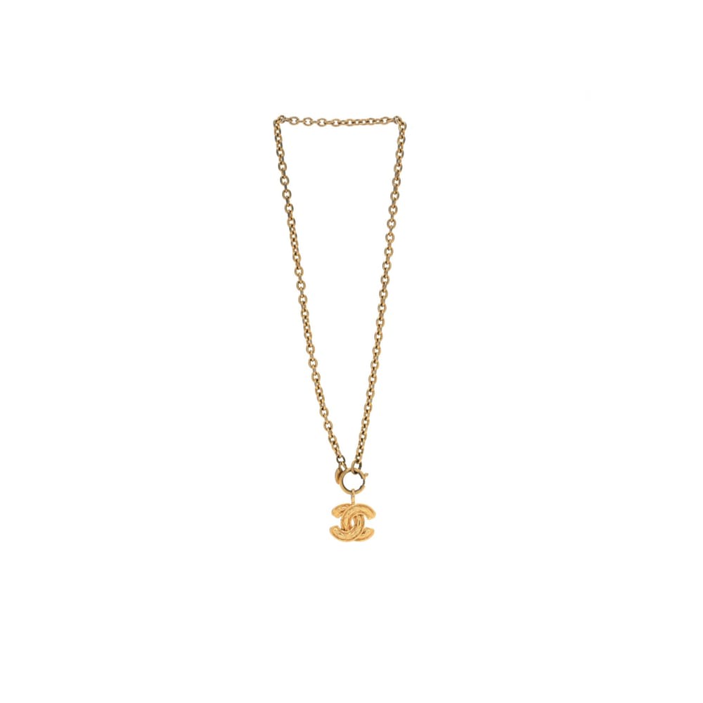This is a vintage piece but in good condition. There are scratches, tarnish, plating wear for the necklace. The gold color of the cc pendant is always pretty and shiny. But the chain is washed out as a reference. Chain Length: 21.00" / Pendant: 1.00".