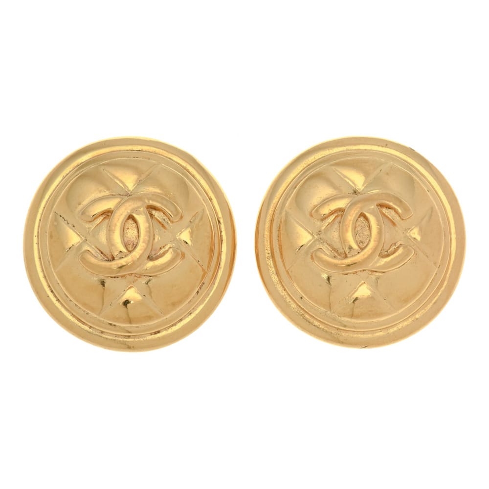 LXR guarantees the authenticity of these Chanel CC Logo Round Clip-on Earrings. Crafted from gold plated metal, these extravagant designer earrings are gold tone. Dimensions: 1.18" x 1.22" x 0.20"} EXT SKU 2217ST143