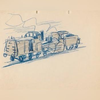 Rückwärtsfahrende Lokomotive mit Tender, Güterwagen ziehend