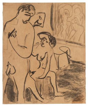 Badendes Paar im Atelier