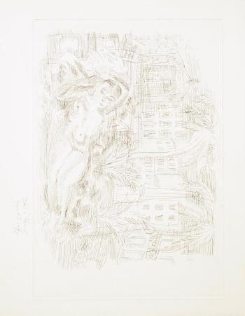 Nu couché aux palmiers avec fond de Côte d'Azur