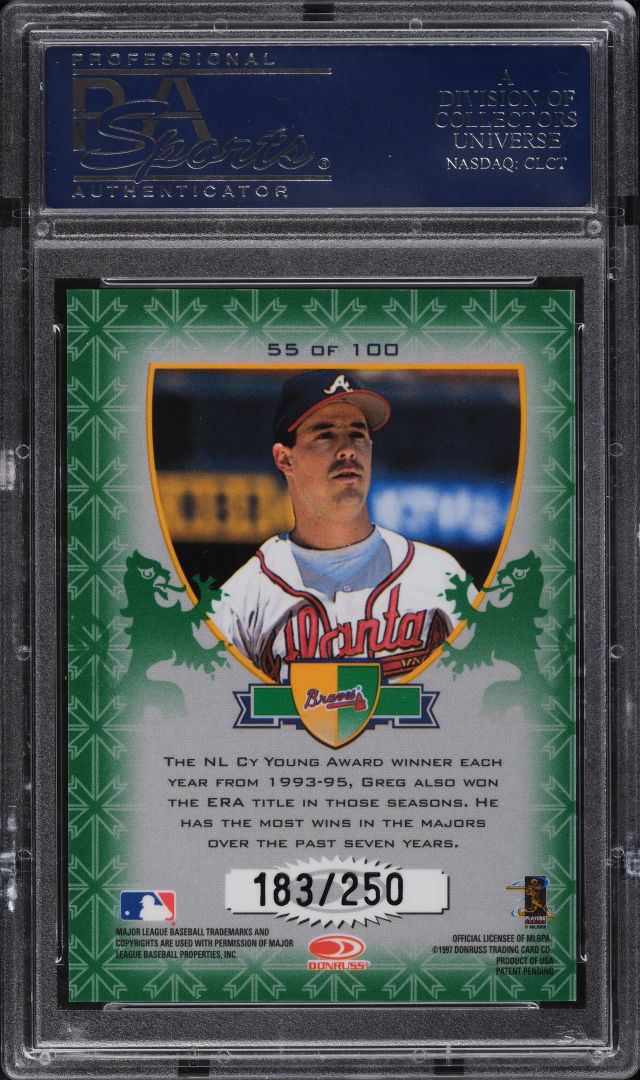 1998 DONRUSS CRUSADE GREEN GREG MADDUX /250 #55 PSA 10 GEM MINT