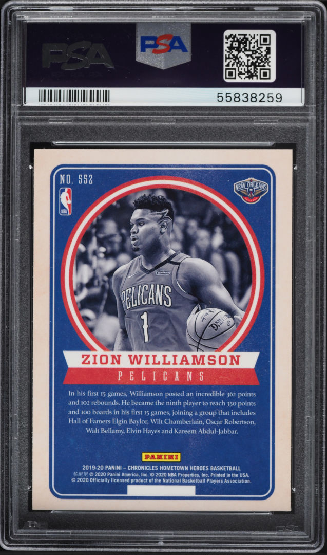 2019 PANINI CHRONICLES HOMETOWN HEROS ZION WILLIAMSON ROOKIE #552 PSA 9 MINT