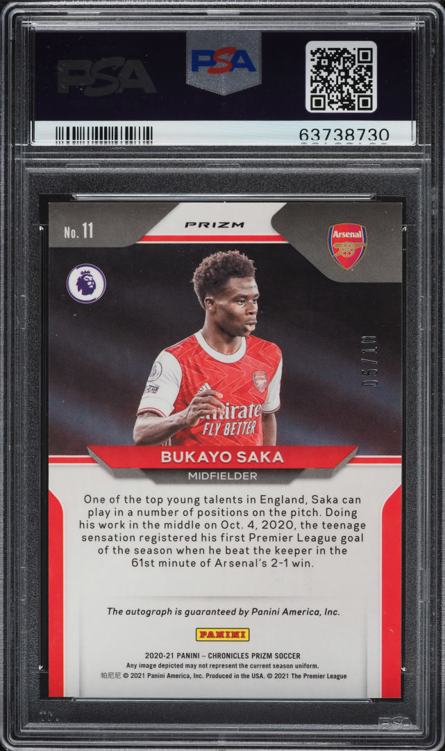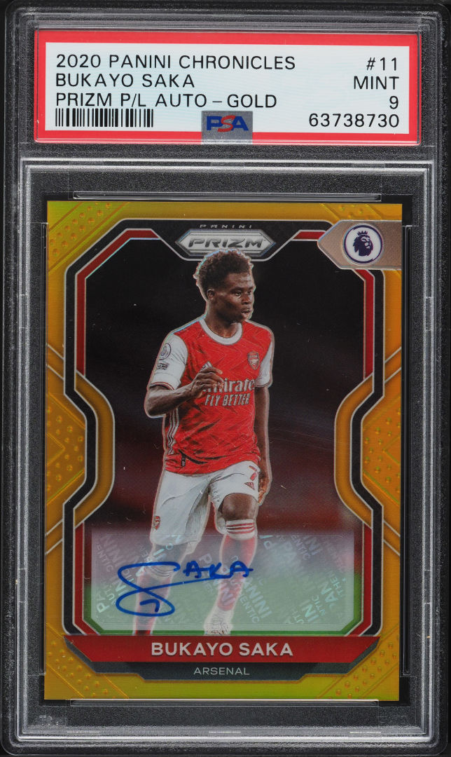 2020 PANINI CHRONICLES PRIZM GOLD PRIZMS BUKAYO SAKA ROOKIE AUTO /10 #11 PSA 9