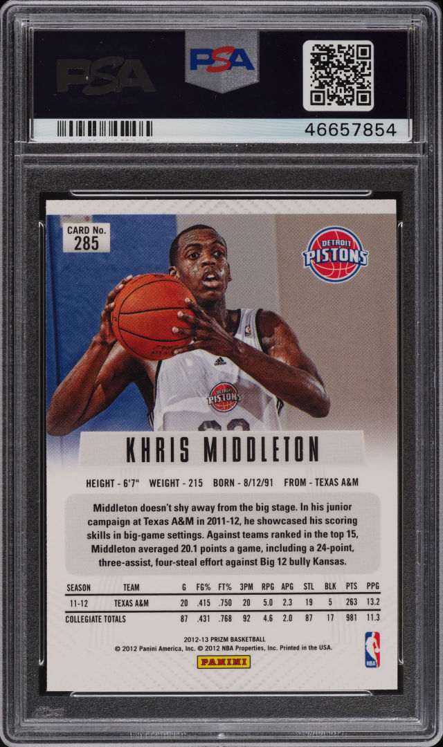 2012 PANINI PRIZM KHRIS MIDDLETON ROOKIE #285 PSA 9 MINT