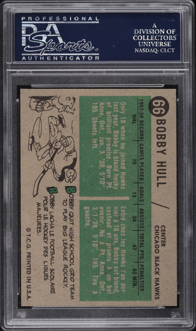 1958 TOPPS HOCKEY BOBBY HULL ROOKIE #66 PSA 7 NRMT